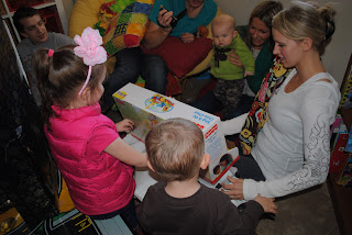 In true Christmas spirit, we celebrated an early Christmas with my in-laws yesterday, as well as helped throw a birthday party for Jesus. This was a party not lacking anything...complete with presents, balloons, cupcakes (Karin-friendly), silly string, a pinata full of goodies, pin the tail on the donkey, and the story of his birth. It was very fun, and the kids had a great time. What better way is there to celebrate? I am thrilled we still have several more activities to do before the 25th. On Friday, Karin will be going to her first Nutcracker ballet. I will never forget the first time I saw it with my mom. I was older, but I remember how "big" I felt getting all dressed up.